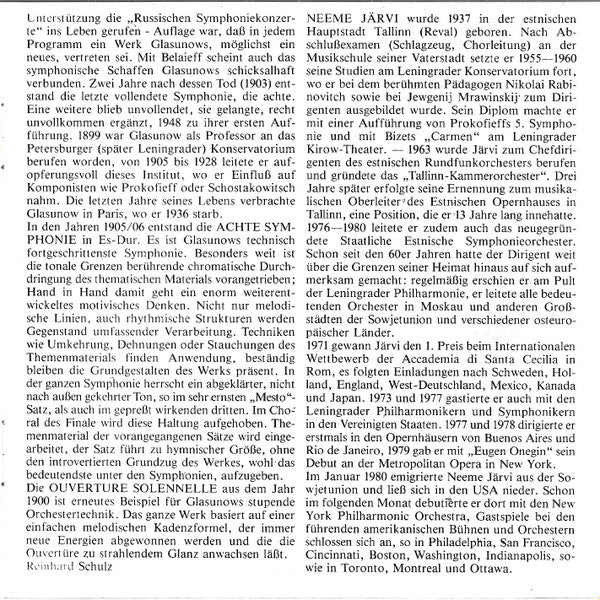 Alexander Glazunov / Symphonie-Orchester Des Bayerischen Rundfunks • Neeme JärviSymphonie Nr. 8 • Ouverture Solennelle • Hochzeitsmarsch