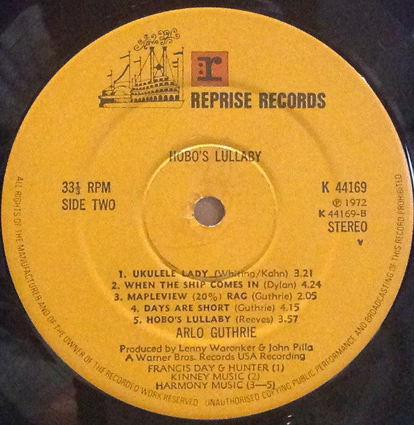 Made in UK on labels. 'Hobo's Lullabye' on the front sleeve, 'Hobo's Lullaby' on the rear sleeve and labels.
