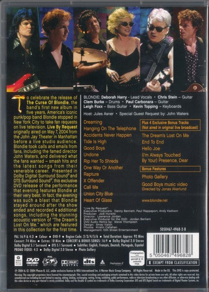 (P) 2004 & (C) 2004 Phasm 8, LLC, under exclusive license to WEA International Inc. A Warner Music Group Company Disc specifications: PAL 16:9 & 4:3 DVD-9 Region Code: 2/3/4/5/6 Concert & Bonus Songs : Dolby Digital 2.0 Stereo, Dolby Digital 5.1 Surround, DTS 5.1 Surround Subtitles: English, Francais, Deutsch, Portugues, Espaňol Total Duration: Approx: 92 Mins