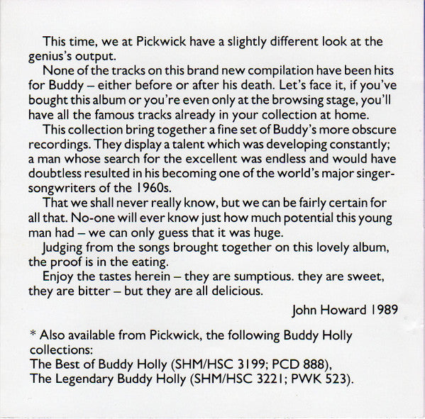 Published 1990 Pickwick International Inc. (GB) Ltd Licenced T0 Pickwick International Inc.(Great Britain) Ltd By MCA Records Ltd. Total Playing Time 35'30" ADD
