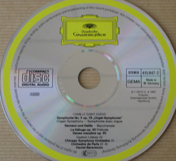 Camille Saint-Saëns, Chicago Symphony Orchestra, Orchestre De Paris, Daniel BarenboimSymphonie Nr.3 »Orgel-Symphonie« / Danse Macabre / Bacchanale / Le Déluge