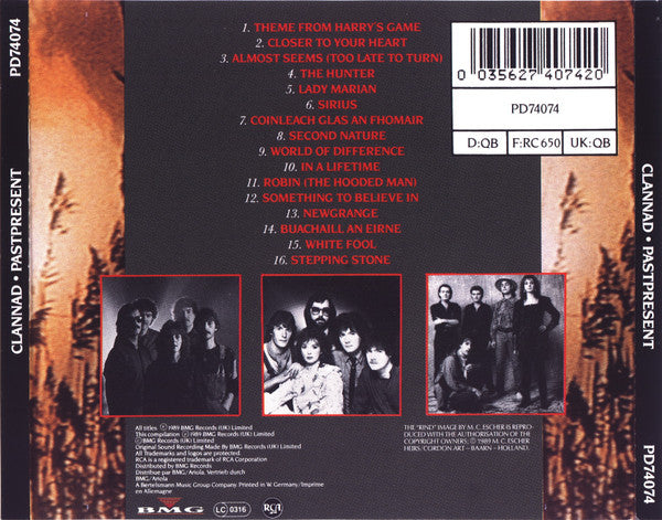 All titles ℗ 1989 BMG Records (UK) Limited This compilation ℗ 1989 BMG Records (UK) Limited © BMG Records (UK) Limited Original Sound Recording Made By BMG Records (UK) Limited Distributed by BMG Records Distribue par BMG/Ariola, Vertrieb durch BMG/Ariola A Bertelsmann Music Group Company. Printed in W.Germany/Imprime en Allemagne Made in Germany Fabriqué en Allemagne Front cover still from "The Hunter" video. Title on disc: Past Present This release is identical to [r750907, except for the M.C. Escher image credit on the back of this version.
