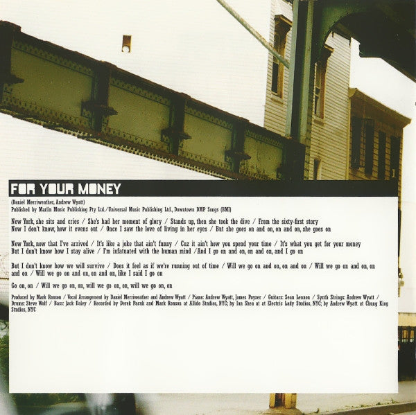 (p)&(c) 2009 RCA/Jive Label Group, a unit of Sony Music Entertainment. Made in the EU. Chainsaw: Contains a portion of the composition "Beat Me 'Til I'm Blue", written by Alan Hawkshaw, published by KPM Music Ltd. Could You: "Could You" adaptation of "California Dreamin" written by Michelle G. Phillips and John Phillips. Published by Universal Music Corporation (ASCAP). All vocals recorded in London, UK & NYC WALE appears courtesy of Allido Records/Interscope Records ADELE appears courtesy of XL Recordings/Columbia SEAN LENNON appears corutesy of Capitol Records THE DAP-KINGS appear courtesy of Daptone Records