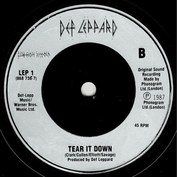 Label print with different publisher credits compared to and A-side: Taken from forthcoming album Def-Lepp Music/Warner Bros. Music Ltd./Zomba Music Pubs.Ltd. B-side: Otherwise unavailable anywhere Def-Lepp Music/Warner Bros. Music Ltd. Runouts are stamped other than etched TOWNHOUSE