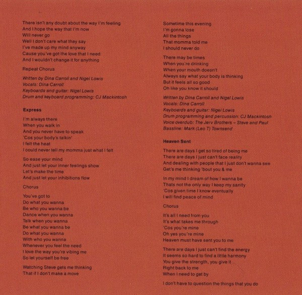 ℗ 1993 A&M Records, Inc. Tracks 1, 5, 6: ℗ 1992 A&M Records, Inc. © 1993 A&M Records, Inc. Printed in the U.S.A. Track 1: Produced, Arranged And Mixed for Cole/Clivilles Music Enterprises Cindy Meisel (courtesy of East/West Records) Audrey Wheeler (courtesy of Ear Candy Records) Track 2: Derek Green (courtesy of ARS Productions) Track 3: Vernett Bennett (courtesy of EMI Records) Easther Bennett (courtesy of EMI Records) Housed inside stickered jewel case, 31454 0062 2 (ST01) printed on sticker. <a href="">Promotional</a> copies issued with hole punch through barcode and "promotional" printed on disc.