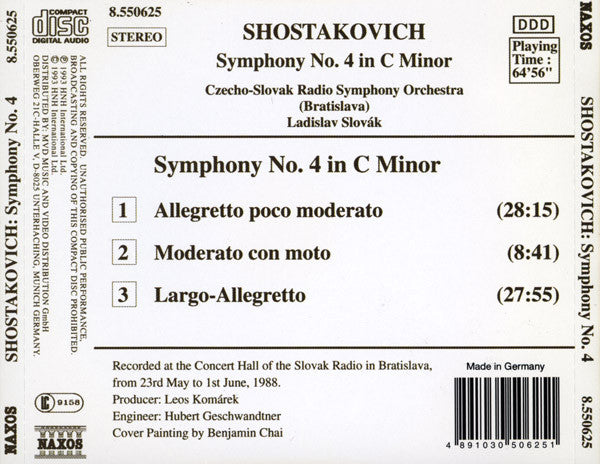 Dmitri Shostakovich, Slovak Radio Symphony Orchestra, Ladislav SlovákSymphony No. 4 In C Minor