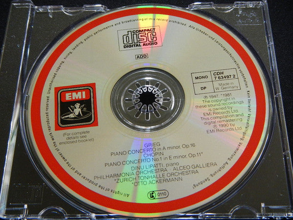 Edvard Grieg • Frédéric Chopin : Dinu Lipatti • Philharmonia Orchestra • Tonhalle-Orchester Zürich • Alceo Galliera • Otto AckermannPiano Concertos