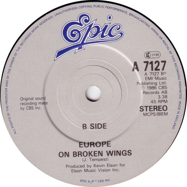 A-side: Taken from the album/cassette "61559" EPC 26808. Note: Label matrices with a white star (✩) suffix. Another version exists with an asterisk (*) suffix; see [r8277103