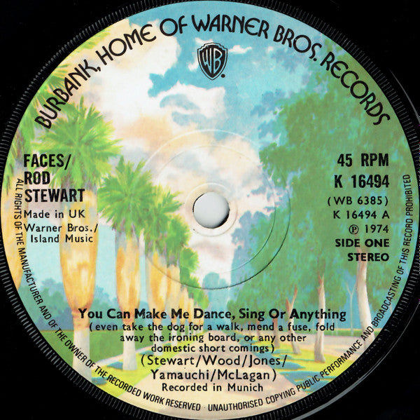 Faces / Rod StewartYou Can Make Me Dance, Sing Or Anything (Even Take The Dog For A Walk, Mend A Fuse, Fold Away The Ironing Board, Or Any Other Domestic Short Comings)