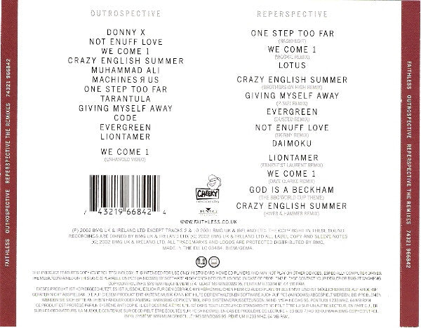 The three clips on disc 1 are the band members talking about the album. It also contains a photo gallery and a biography. Tracks 1-02 & 2-07 contain a sample from Sympathy, performed by Steve Rowland & Family Dogg. Track 1-05 incorporates elements from "Strategy", written by John Whitehead, Gene McFadden & Jerry Cohen and performed by Archie Bell & The Drells. (P)2002 BMG UK & Ireland except tracks 1-02 & 1-10 2001 BMG UK & Ireland Ltd. The copyright in these sound recordings are owned by BMG UK & Ireland Ltd. (C)2002 BMG UK & Ireland Ltd. Made in the EU Addition "The Remixes" of Reperspective are only mentioned at the front and spines, the index-track on the back misses that addition.