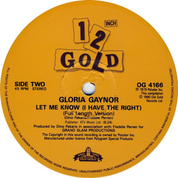 Produced by Dino Fekaris in association with Freddie Perren for Grand Slam Productions. Publisher ATV Music Ltd. Side A: (P) 1978 Polygram Records Inc. (New York), Side B: (P) 1979 Polydor Inc. (C) 1990 Old Gold Records Ltd.