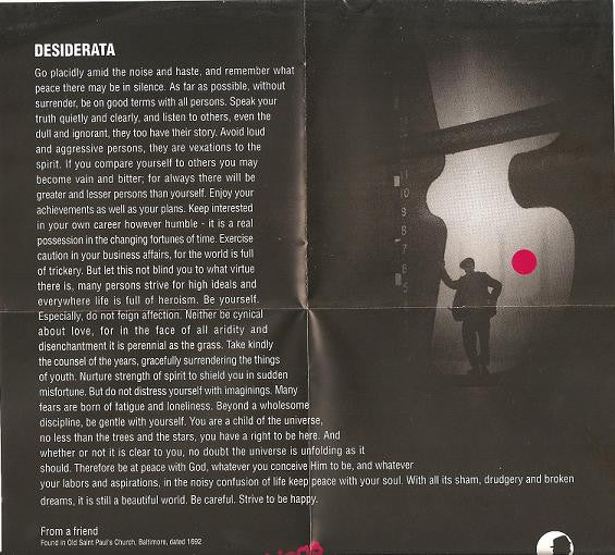 Comes with booklet containing lyrics + credits and an insert ("Desiderata").