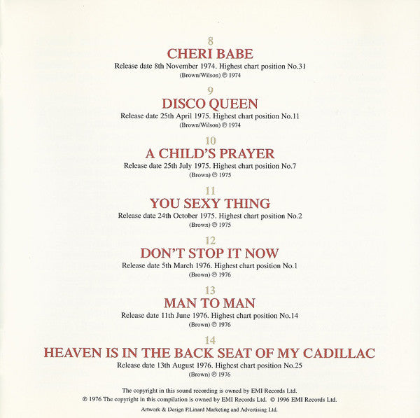 Re-issue of 1976's original 'XIV Greatest Hits' album. Packaged in a jewel case (clear tray) Total Time: 54'02" (not specified on release) Comes with an 8-page booklet. Made in the UK Printed in UK ℗ 1976 EMI Records Ltd. © 1996 EMI Records Ltd.