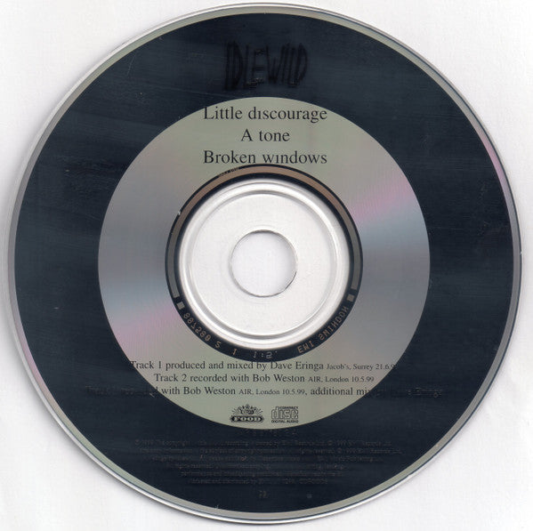Sticker on front cover: CD1 of a 2 CD set Includes 'Little discourage', 'A tone' and 'Broken windows' 8875802 Back cover: Printed in EU Marketed and distributed by EMI ℗ 1999 The copyright in this sound recording is owned by EMI Records Ltd. © 1999 EMI Records Ltd. Manufactured in the EU. All tracks published by Deceptive Music Ltd. / EMI Music Publishing Ltd. Disc: Track 1 produced and mixed [at Jacob's, Surrey 21.6.99 Track 2 recorded [at AIR, London 10.5.99 Track 3 recorded [at AIR, London 10.5.99 ℗ 1999 The copyright in this sound recording is owned by EMI Records Ltd. © 1999 EMI Records Ltd. All tracks published by Deceptive Music Ltd./EMI Music Publishing Ltd. Manufactured in the EU. Marketed and distributed by EMI. __ Released in Digipak. Track durations are not printed on the release.