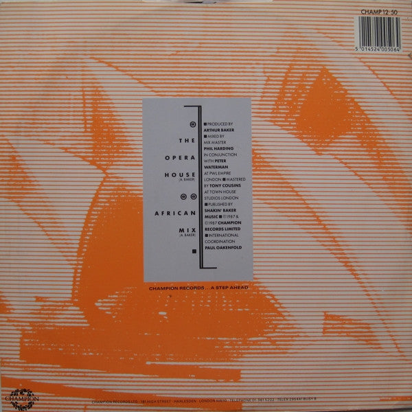Mastered at The Townhouse. Pressed at Damont Audio Limited. ℗ & © 1987 Champion Records Ltd. Published by Shakin' Baker Music. Made in England Contains samples from various operatic works. Both versions mentioned on label as 'Blue Ink Mix'.