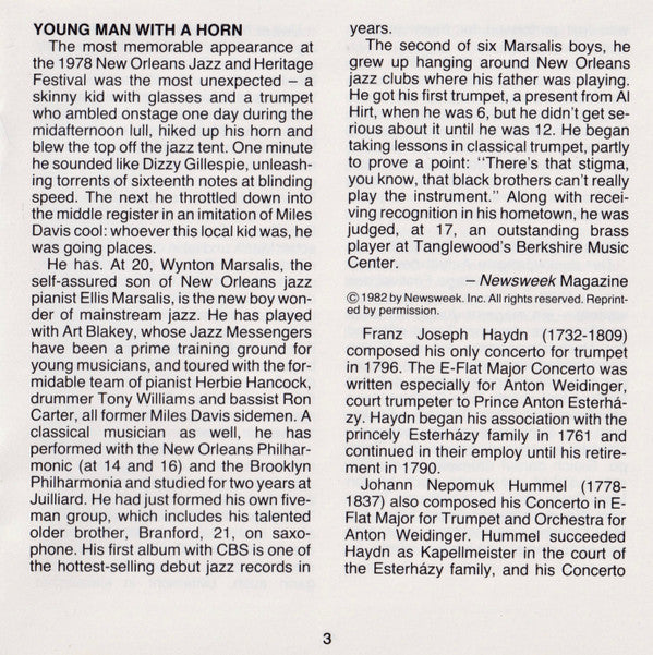 Joseph Haydn • Johann Nepomuk Hummel • Leopold Mozart, Wynton Marsalis, National Philharmonic Orchestra, Raymond LeppardTrumpet Concertos