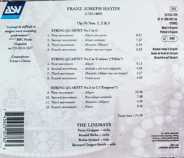 Joseph Haydn - The LindsaysString Quartets Op. 76: No. 1 • No. 2 "Fifths" • No. 3 "Emperor"
