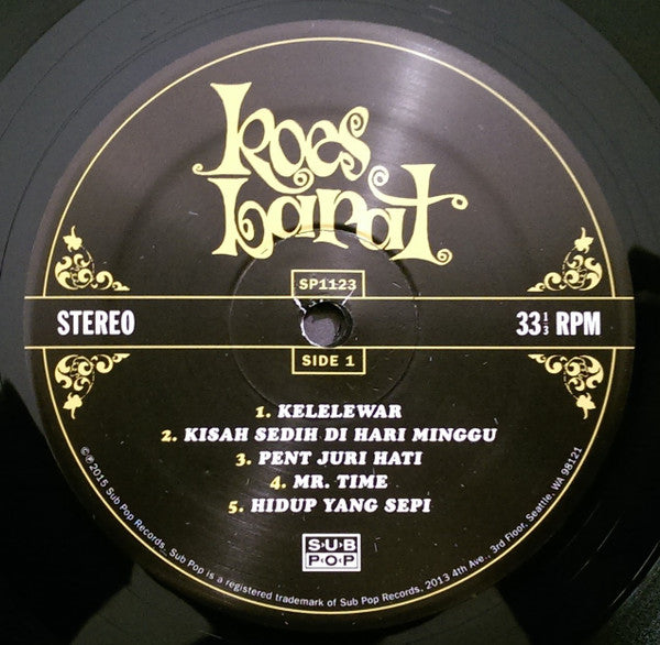 Issued for Record Store Day 2015 in a foil stamped sleeve with printed inner sleeve. Limited to 3,800 worldwide. Comes with a download card. "Alan Bishop (Sun City Girls), backed by members of Master Musicians Of Bukkake, doing covers of Bishop's favorite 60's-70's Indonesian band Koes Plus! Crack production by [... (Sunn O))), Boris)!" (from the sticker). © ℗ 2015 Sub Pop Records