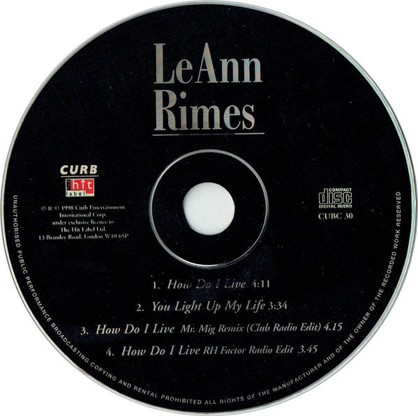 J-card case. Tracks 1 & 2 taken from the album 'You Light Up My Life' CURCD 046 Track 3 remixed for Yougoboy Productions Track 4 remixed for RH Factor Productions Track 1, Realsongs ASCAP Track 2, PolyGram Music Publishing Ltd./copyright control ℗ & © 1998 Curb Entertainment International Corp. under exclusive licence to The Hit Label Ltd. 13 Bramley Road, London W10 6SP Other versions: [r8012383 has a similar matrix pattern to this entry but has no SID codes. [r1364831 is believed to be a Nimbus pressing.
