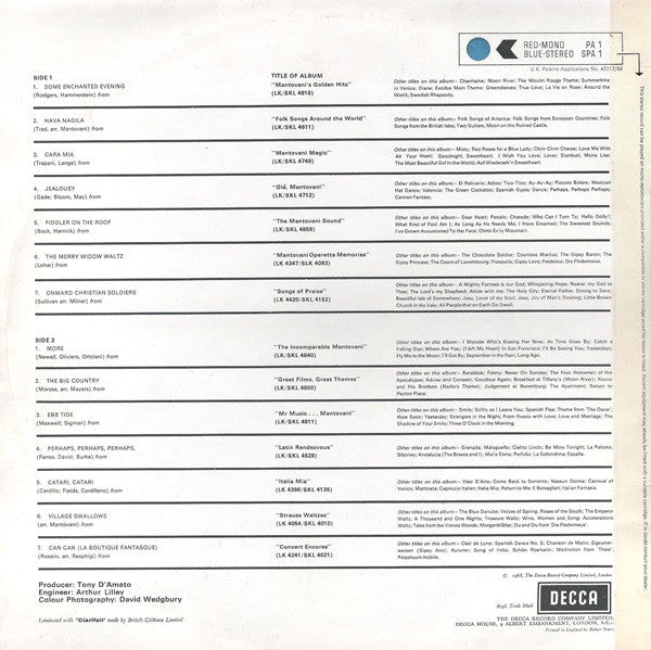 THE DECCA RECORD COMPANY LIMITED DECCA HOUSE. 9 ALBERT EMBANKMENT, LONDON, S.E. 1. BIEM | NCB France Melodie This release was Issued with a Standard jacket with Black & White labels. Sleeve states where all tracks come from previous LPs with cat no's and tracklistings for each. This is the UK's first million selling Stereo LP.