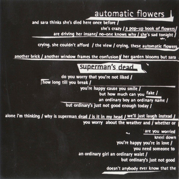 Issued in a standard jewel case. Like [r11855117 but with different barcode P.& C. 1997 Sony Music Entertainment (Canada) Inc. "Columbia" is a trademark of Sony Music Entertainment (Canada) Inc. "Sony" is a trademark of Sony Corporation. Published by Sony Music Publishing / Under Zenith Publishing / Catchit Songs / Lanni Tunes / I'm In Zihuantanejo.Music. Recorded and mixed in Toronto. Mastered at Gateway Studios, Portland. Management for Coalition Entertainment Management. Our Lady Peace use: Mesa Boogie amps, Gibson guitars, Dean Markely strings, Ayotte drums, Greg Keplinger snare drums, Zildjian cymbals & sticks, Remo drum heads, Garwood in Ear monitoring systems, NHT loudspeakers, Coll audio, Club bass, Rumblefish rehearsal studios & Sonotechnique.