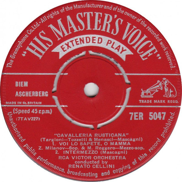 Pietro Mascagni - Zinka Milanov, Margaret Roggero, Robert Merrill, The Robert Shaw Chorale, RCA Victor Symphony Orchestra Conducted By Renato CelliniCavalleria Rusticana