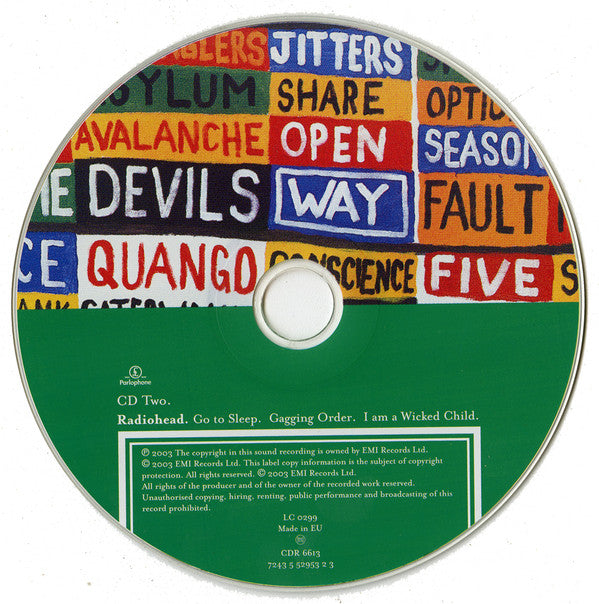 Sticker on front case: CD two includes two exclusive tracks Inner: Also available is CD1 Go to Sleep. I am Citizen Insane. Fog. (again) - Live Published by Warner Chappell Music Publishing Ltd. Inner & disc: ℗ 2003 The Copyright in this Sound Recording is owned by EMI Records Limited. © 2003 EMI Records Limited. © 2003 EMI Records Limited. Flap: Marketed and distributed by EMI. Printed in the EU. Spine: Compact Disc 2. Disc: CD Two. Made in EU Released in a J-card case with four panel folded inlay (blank inner panels). Track durations are not printed on the release. Catalog numbers: 7243 5 52953 2 3 (flap & disc) 5529532 (sticker) 7243 552953 2 3 (spine) UK: CDR 6613 (flap) CDR 6613 (disc)