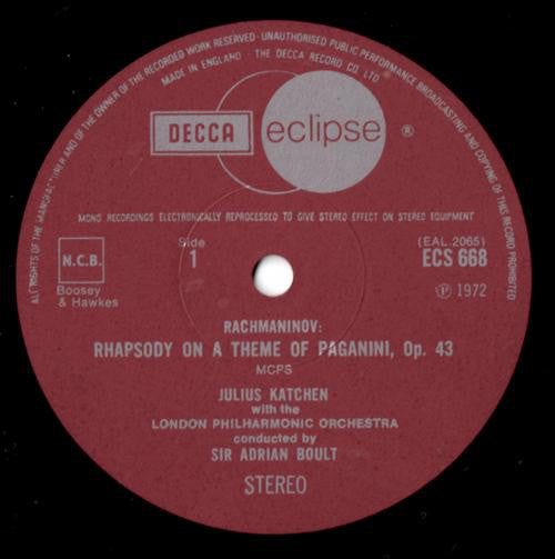 A. Sergei Vasilyevich Rachmaninoff, Julius Katchen, The London Philharmonic Orchestra, Sir Adrian Boult - Rhapsody On A Theme Of Paganini, Op. 43