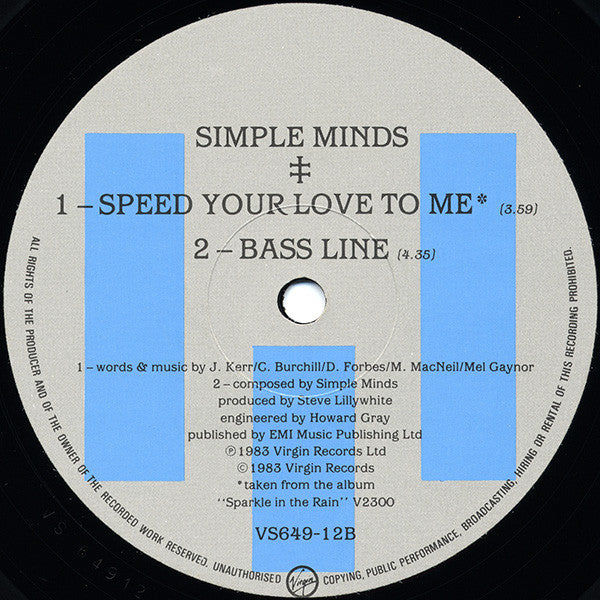 B2 is an instrumental version of the "Sparkle In The Rain" album track "White Hot Day". ℗ 1983 Virgin Records Limited. © 1983 Virgin Records Limited. Track B1 is taken from the album "Sparkle In The Rain" V2300. Glossy cover. Variant 4 (probably a reissue): Semi-glossy cover. Generic inner sleeve with rounded corners ( DRG MALAGO British Patent No. 1125555 321 12/86 B MADE IN GREAT BRITAIN).