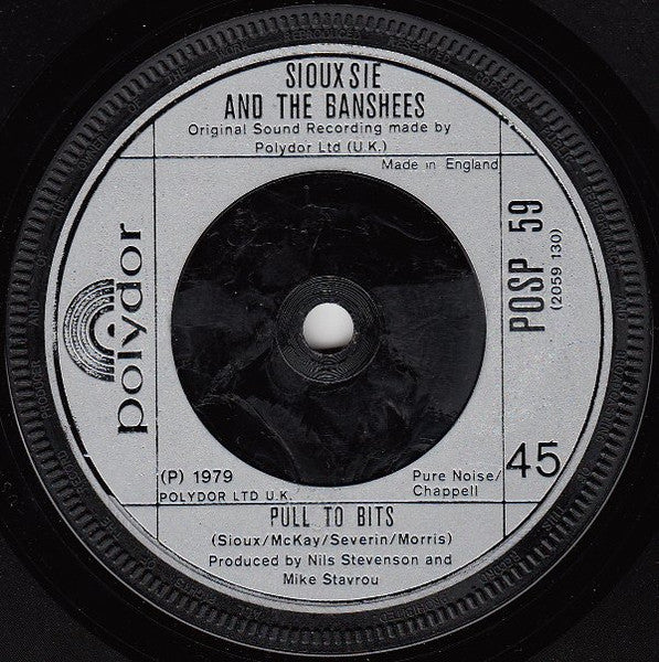 Back cover: ℗ and © 1979 Polydor UK Ltd. Labels: Original Sound Recording made by Polydor Ltd (U.K.) Made in England (P) 1979 Polydor Ltd U.K. Pure Noise/Chappell Other notes: Track B is titled "Pulled To Bits" but is mis-printed as "Pull To Bits" on label. Track times do not appear on release.