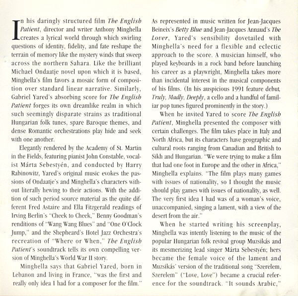 The Academy Of St. Martin-in-the-Fields, Gabriel YaredThe English Patient (Original Soundtrack Recording)