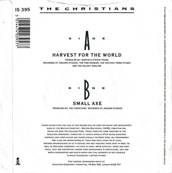 Cover versions of the Isley Brothers and Bob Marley songs to raise money for charity. The A-side runout is etched "I5" instead of "IS", the B-side runout was etched "I2" but the two has been corrected to a five. Stamper/metalwork by Musitech, High Wycombe.