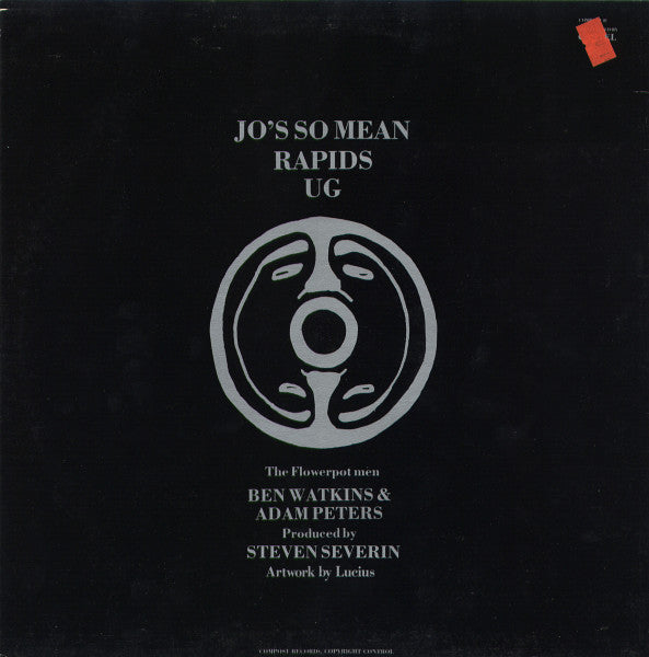 A side called "Jo's So Mean" on the sleeve and "Jo's So Mean To Josephine" on the record itself. "UG" ends with a locked groove. Made in France Side B end in a locked groove. No printed track durations (on cover, labels). There is a little inside joke hidden in the etched runouts combined with the name and compostion of the band.