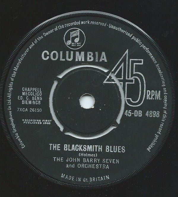 This variant has black labels, 45- prefix to catalog number, no 'Sold in U.K.' text and label rimtext in upper/lower case. Track A: United Artists Ltd. Mecolico BIEM/NCB Track B: Chappell Mecolico Ed. C. Bens BIEM/NCB Recording first published 1962 Made in Gt. Britain