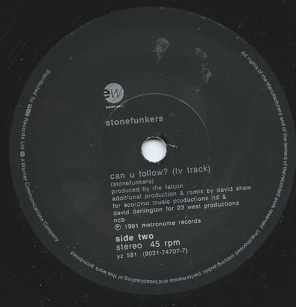 ℗ 1991 Metronome Records © Warner Music UK Ltd. A Time Warner Company. The copyright in this sound recording and artwork is owned by Warner Music UK Ltd. Unauthorised copying, hiring, lending, public performance and broadcasting of this recording prohibited. This is a interracial FunkenSound Recording. Can U Follow? is taken from the "new" album '127009' Some copies incl. a white round promotional sticker "Promotional Copy Only Not For Resale"