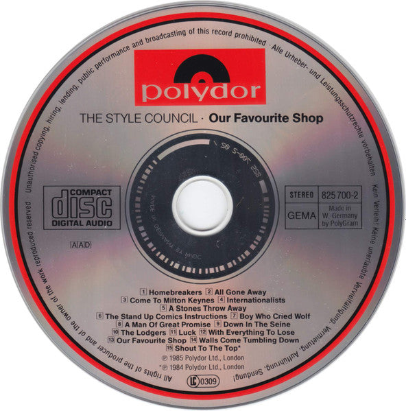 Later Euro re-press (early 90s) is very similar to [r=1510960 but this also has "..by PMDC" embossed in the inner hub. No SID codes. CD face still states "Made in W.-Germany by PolyGram" and stiil has "Printed in West Germany" on the in-lay card & booklet, and has both Y | H and POL 900 codes on the in-lay card. In-lay also still has "CD is manufactured by PolyGram in Hanover, West Germany." The matrix ring has multiple 'blocks'. Track 10: title as "The Lodgers" on the disc and the back sleeve but as "The Lodger's (or She Was Only A Shopkeeper's Daughter") in the booklet. D.C. Lee appears courtesy of CBS Records. Clark Kent courtesy of Chevalier Bros. Billy Chapman courtesy of Animal Nightlife & Island Records. Lyrics reproduced by kind permission of EMI Music Pub. Ltd. ℗ 1985 Polydor Ltd., London ℗ 1984 Polydor Ltd., London (Shout To The Top) © 1985 Polydor Ltd., London