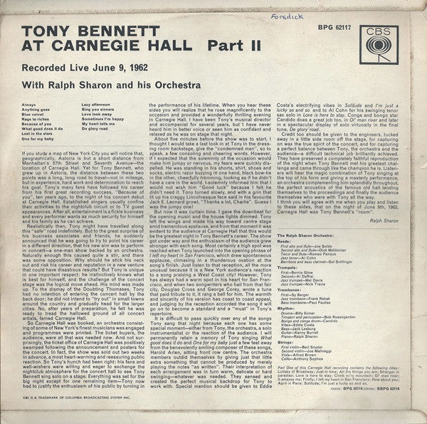 Tony Bennett With Ralph Sharon And His OrchestraAt Carnegie Hall Part 2