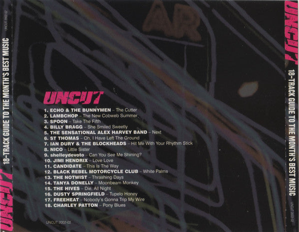 Free with Uncut Magazine March 2002. 1: Warner Chappell. (P) & (C) 2002 [l4184. Taken from the album Live At LIPA/Liverpool: August 17-18, 2001 ([l4184) also available on DVD with extra tracks and bonus features. 2: [l440866/Admin: Bug. The copyright in this sound recording is owned by [l527885 under exclusive license to [l2441/labels Germany. (P) & (C) 2002 [l527885. Taken from the album 35070 ([l2441). 3: [l1013739 [BMI. (P) & (C) 2001 [l61865. Issued under licence from Spoon. Taken from the album 43616 ([l61865). 4: [l282302. (P) & (C) 2001 [l288970. The "lost" bonus track for Uncut's Gimme Shelter compilations. 5: [l268880/Britico. (P) 1973 [l224185 Taken from the album [r=1967655 ([l39357). 6: [l48207. The copyright in this recording is owned by [l7751 as under exclusive licence to [l2441/labels Germany. (P) 2001 [l7751 as (C) 2001 ([l2441). 7: Templemill Music Ltd/Warner Chappell Music. Recorded straight from the mixing desk on to a cassette @ Ilford Odeon, December 23, 1978. (P) & (C) 2001 The Blockheads Ltd. Taken from the album 783796 ([l115862/[l123882). 8: [l320184 [BMI/[l295866 [BMI: Admin: Screen Gems-EMI Music, Inc. (P) 1966 [l796, a Division of [l272782 Taken from the album [r=1502767 ([l22532). 9: Mute Songs/[l123832. (P) & (C) 2002 [l4184. Taken from the album 214337 ([l4184). 10: [l500870. (P) & (C) 2001 [l14333. Taken from the album The Summer Of Love Sessions @ Studio 76 In 1967 (Jungle). 11: [l48207. (P) & (C) 2001 [l37916. Taken from the album 313885 ([l37916). 12: [l522724/Admin: WB Music Corp [BMI. (P) & (C) 2001 [l16815 Taken from the album 80426 ([l750). 13: Wintrup Musikverlage. The copyright in this sound recording is owned by [l279581 under licence to [l2441. (P) & (C) 2001 [l279581/[l2441. Taken from the album 9468 ([l2441). 14: [l299209 [BMI. (P) & (C) 2002 [l273745 Taken from the album 6982 ([l634). 15: [l282529. Issued under licence from [l33284. (P) 2001 [l33284 (C) 2001 [l312721 Taken from the album 29269 ([l1925). 16: Warner-Chappell Music. (P) 1973 [l25241. Taken from the digitally remastered album [r=596526 ([l22532). 17: [l48207. (P) 2001 [l137277 under licence from [l1164099 (C) 2001 [l1164099. Taken from the five track mini-album [r=2542710 (Outafocus). 18: [l328239 [BMI. (P) & (C) 2001 [l19152. Taken from the seven-CD deluxe package Screamin' & Hollerin' The Blues: The Worlds Of Charley Patton ([l19152). US import distributed by Cargo.