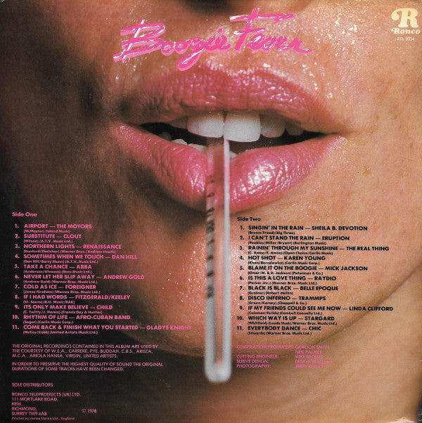 The original recordings used in this album are used by courtesy of W.E.A., Carrere, Pye, Buddah, C.B.S., Arista, M.C.A., Ariola Hansa, Virgin, United Artists. In order to preserve the highest quality of sound the original durations of some tracks have been changed. © 1978