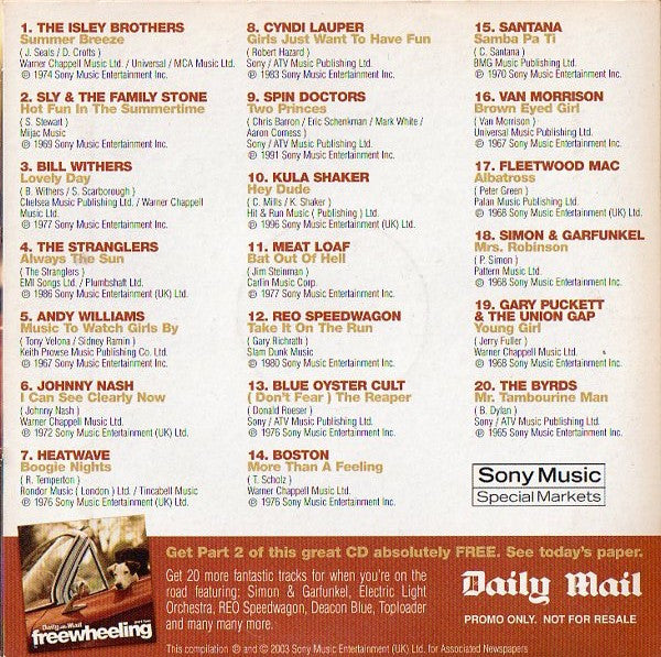 This compilation ℗ and © 2003 Sony Music Entertainment (UK) Ltd. for Associated Newspapers. CD given away free with the British national newspaper, Daily Mail. Card sleeve. Track durations are not shown on the release.