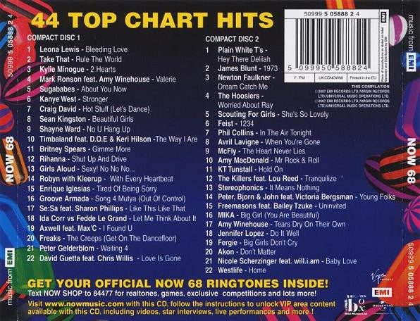 "41 Top Chart Hits" "Double CD" Printed in the EU. Made in EU. www.nowmusic.com THIS COMPILATION ℗2007 EMI Records Ltd./Virgin Records Ltd./Universal Music Operations Ltd. ©2007 EMI Records Ltd./Virgin Records Ltd./Universal Music Operations Ltd. Durations not stated on release.